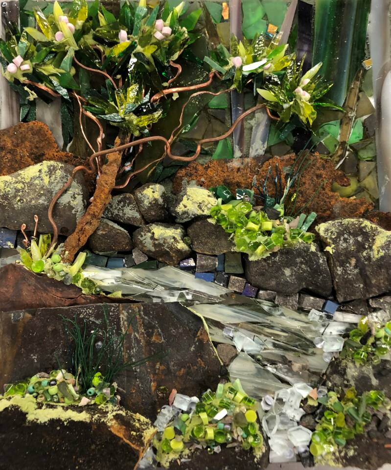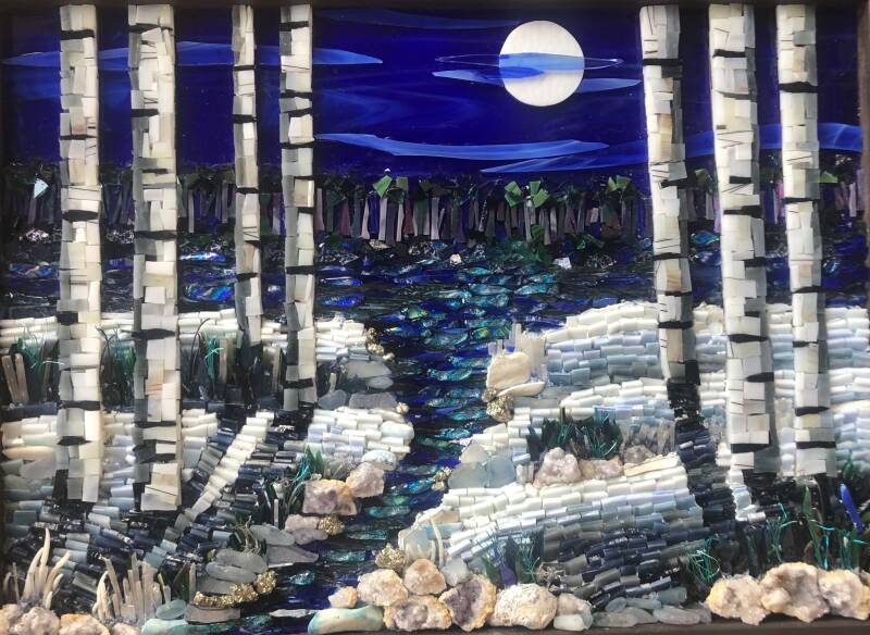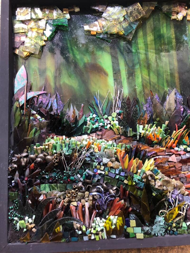 Deze workshop is speciaal voor kunstenaars die mozaïektechnieken willen verkennen om een realistisch landschap te creëren. We werken met traditionele materialen zoals glas, steen, schelpen, kralen, metaal…etc.